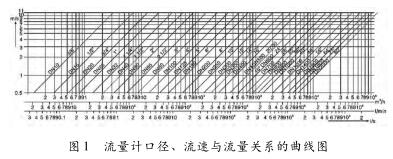 儀表口徑是根據管道內平均流速而定的,通常選用與管道相同的口徑或略小些。一般工業輸水管道經濟流速為1.5~3m/s,易粘附沉積結垢物質則提高到3~4m/s或更高,礦漿等磨蝕性強的為2~3m/s。污水流量計量表的液體流速范圍可在1~10m/s之間選用。原理上,上限流速并沒有限制,滿度流量的流速下限一般為1m/s,有些產品為0.5m/s,低于此流速,從測量準確度出發應改用小管徑,以異徑管連接到管道。但加裝異徑管要注意壓力損失的問題。圖1為流量計口徑、流速與流量關系的曲線圖,計算儀表口徑時可參照。