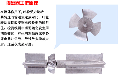 渦輪流量計采用渦輪進行測量。它先將流速轉(zhuǎn)換為渦輪的轉(zhuǎn)速,再將轉(zhuǎn)速轉(zhuǎn)換成與流量成正比的電信號。這種流量計用于檢測瞬時流量和總的積算流量,其輸出信號為頻率,易于數(shù)字化。圖中感應線圈和永久磁鐵一起固定在殼體上。當鐵磁性渦輪葉片經(jīng)過磁鐵時,磁路的磁阻發(fā)生變化,從而產(chǎn)生感應信號。信號經(jīng)放大器放大和整形,送到計數(shù)器或頻率計,顯示總的積算流量。同時將脈沖頻率經(jīng)過頻率-電壓轉(zhuǎn)換以指示瞬時流量。葉輪的轉(zhuǎn)速正比于流量,葉輪的轉(zhuǎn)數(shù)正比于流過的總量。渦輪流量計的輸出是頻率調(diào)制式信號,不僅提高了檢測電路的抗干擾性,而且簡化了流量檢測系統(tǒng)。它的量程比可達10:1,精度在±0.2%以內(nèi)。慣性小而且尺寸小的流量計的時間常數(shù)可達0.01秒。