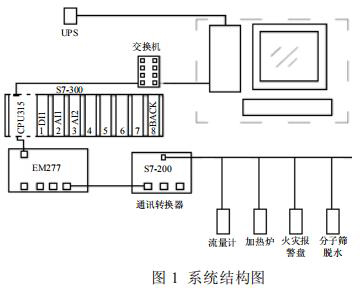 集氣站是收集氣井所生產(chǎn)天然氣的站場,在集氣站內(nèi)對天然氣進行節(jié)流降壓、加熱、調(diào)壓計量等各種工藝預處理,設備眾多且分散。為方便進行檢測和操作,必須進行統(tǒng)一的數(shù)據(jù)采集,在監(jiān)控臺進行數(shù)據(jù)的管理。集氣站設備主要包括加熱爐、高壓型電磁流量計、分子篩、火災報警盤,以及供電設備 UPS 等,這些不同廠家的設備基本都支持Modbus 協(xié)議,通過 Modbus 通訊可以將這些數(shù)據(jù)采集。為了有效降低成本,設計了如圖 1 所示的系統(tǒng)。系統(tǒng)采用西門子 S7-300 控制器,通過以太網(wǎng)連接上位機監(jiān)控軟件,再通過 MP277 連接S7-200 的方式。S7-200 控制器自帶 RS485 接口,能夠進行 Modbus 通訊,采集現(xiàn)場各種設備數(shù)據(jù)。*后通過以太網(wǎng)通訊將設備數(shù)據(jù)上傳至監(jiān)控軟件,方便操作人員進行監(jiān)控,該方案簡單有效,能夠?qū)崿F(xiàn)集氣站內(nèi)設備的狀態(tài)監(jiān)控,數(shù)據(jù)處理,有效的進行天然氣的生產(chǎn)工作。