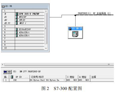 S7-300 控制器與 S7-200 控制器之間的通訊是實現(xiàn)系統(tǒng)數(shù)據(jù)采集的關鍵,EM277 可以方便的實現(xiàn) S7-300 與 S7-200 之間的 PROFIBUS DP 通訊,只需要在 STEP7 中進行 S7-300 控制站的組態(tài),簡單配置 EM277 設備。選中 STEP7 的硬件組態(tài)窗口中的菜單 Optionà Install new GSD,導入 SIEM089D.GSD 文件,安裝 EM277 從站配置文件。導入 GSD 文件后,在右側(cè)的設備選擇列表中找到 EM277 從站,根據(jù)需要的通訊字節(jié)數(shù),選擇一種通訊方式。本文中需要通訊的數(shù)據(jù)量比較大,選擇了*大的 64 字節(jié)輸入/64 字節(jié)輸出的配置。S7-300 的硬件下載完成后,將 EM277 的撥位開關撥到與以上硬件組態(tài)的設定值一致。