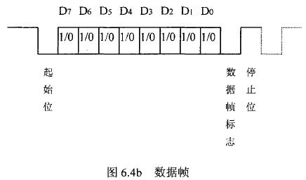 測水流量計等節點設備和站內PC機間的通信采用異步串行通訊控制規程,并采用地址位喚醒握手協議。因此在協議中規定了傳地址和傳數據兩種不同的幀格式,如圖.64所示。地址幀和數據幀由11位構成,幀格式為l位起始位,l位停止位,8位數據位,1位*9位。我們將*9位設定為“地址/數據指示位”,用來區分所發送/接受的幀信息是地址幀還是數據幀。*9位為1,表示PC機發送/接受的是“地址幀”*9位為O,表示主機發送/接受的是“數據幀”。命令幀與校驗和的發送格式與數據幀相同,因此可由數據幀演化得到。