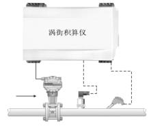 二是采用蒸汽流量積算儀,將渦街氣體流量計所測工況體積流量以及溫度和壓力變送器所測信號傳到蒸汽流量積算儀,如圖 2 所示由蒸汽流量積算儀進行補償運算。蒸汽流量積算儀內置過熱蒸汽以及飽和蒸氣補償算法,可以輸出質量流量、標準體積流量甚至熱量和比焓等。