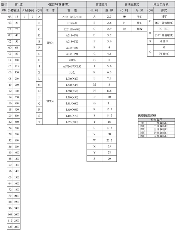 總長度允許誤差范圍:φ114.3-273,±4mm;DN323.8-610,±6mm;DN660-1524,±7mm。長輸管道公稱直徑從“4 1/2~60”,只有一個外徑系列,故選項時不選外徑代碼。