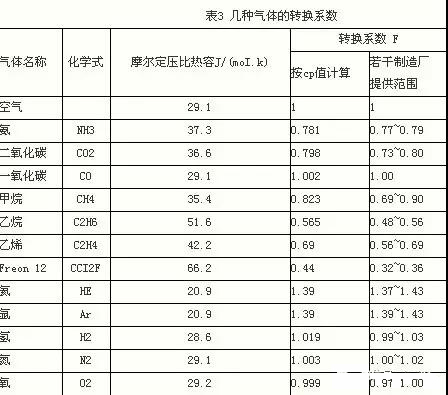 各廠提供的轉換系數單雙原子氣體差別較小,僅百分之幾;烴類氣體則差別較大,達20% ~30%。
