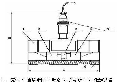 渦輪流量計由渦輪、軸承、前置放大器、顯示儀表組成。渦輪變送器的工作原理是當流體沿著管道的軸線方向流動,并沖擊渦輪葉片是,便有與流量qv、流速V和流體密度ρ乘積成比例的力作用在葉片上,推動渦輪旋轉。在渦輪旋轉的同事,葉片周期性地切割電磁鐵產生的磁力線,改變線圈的磁通量。根據電磁感應原理,在線圈內將感應出脈動的電勢信號(此脈動信號的頻率與被測流體的流量成正比)。渦輪變送器輸出的脈沖信號,經前置與放大器放大后,送入顯示儀表,就實現了流量的測量。
